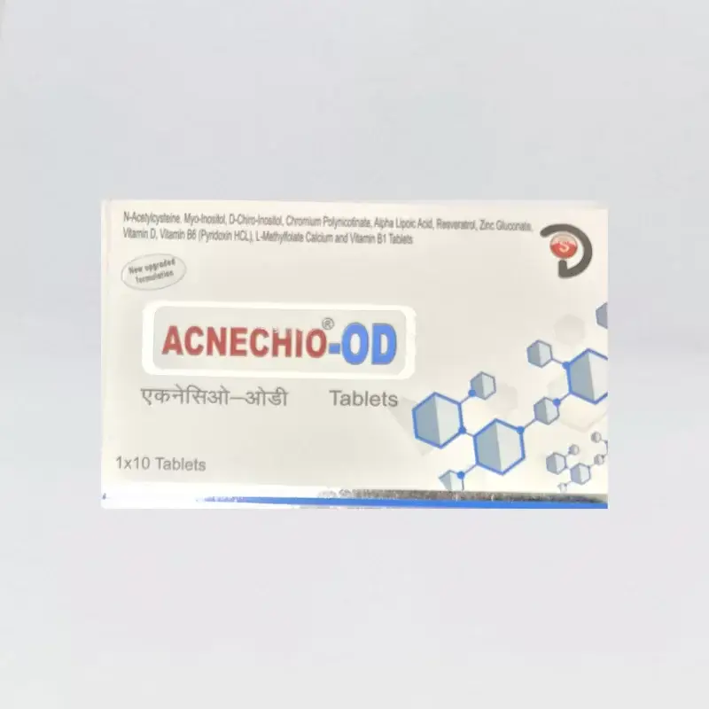 Acnechio-Od Tablet is used as dietary supplement. It contains Alpha lipoic acid, Cholecalciferol, chromium, Inositol, N-acetylcysteine and Zinc…